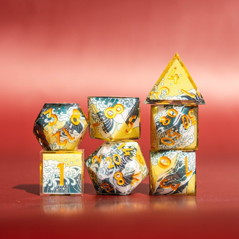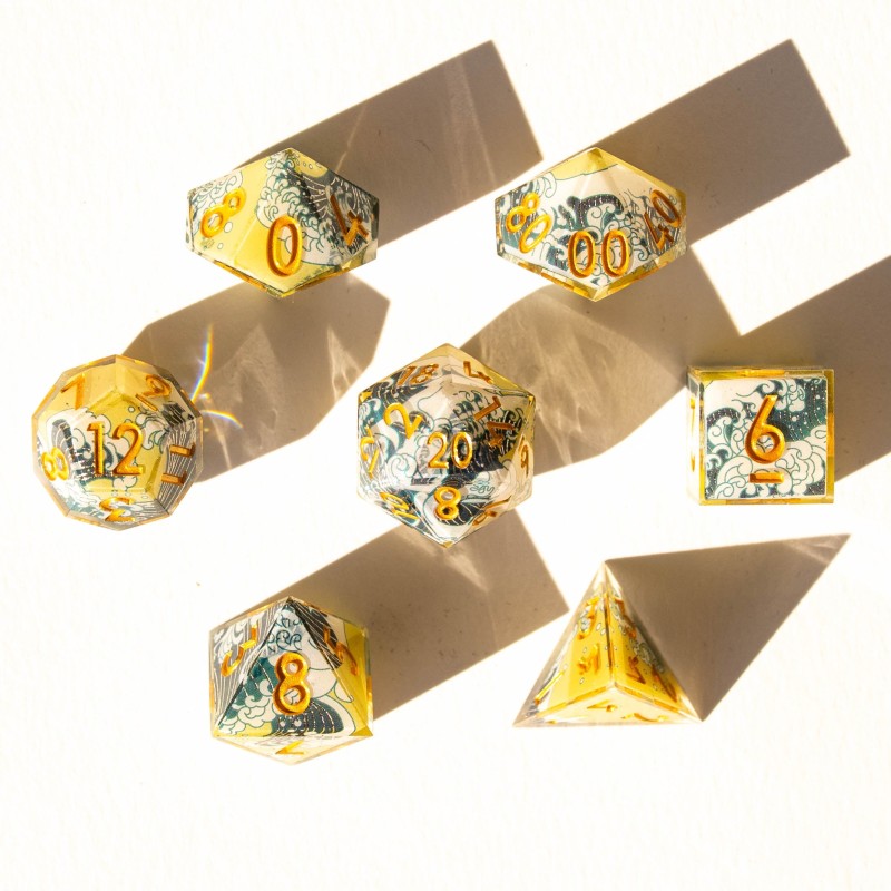 Murmure des Flots | Set de dés JDR en résine sculptée en strates