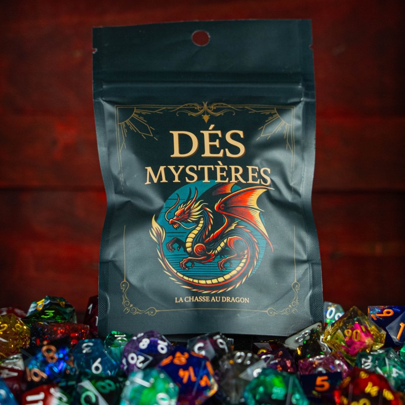 Chaque pochette surprise renferme un set en résine premium de dés de jeu de rôle, soigneusement sélectionné par les mains capricieuses du destin. Avec plus de 100 sets différents à collectionner, y compris des dés à cœur liquide exclusifs, préparez-vous à découvrir des trésors inattendus. Qui sait quel puissant artefact se cache dans votre prochain tirage ?