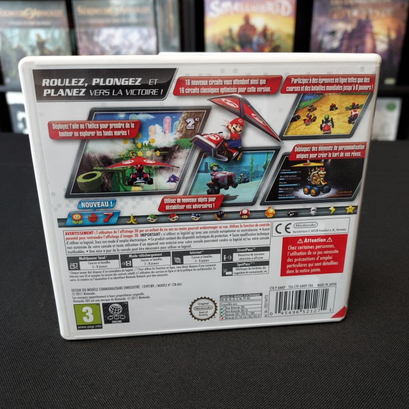 Mario Kart 7 est un jeu de courses sur Nintendo 3DS. Roulez, planez, plongez sur une douzaine de circuits, certains tout nouveaux et d'autres classiques des précédents jeux de Mario Kart, qui ont été améliorés avec de nouvelles caractéristiques. Grâce au nouveau deltaplane, un tas de raccourcis s'offrent au joueur !