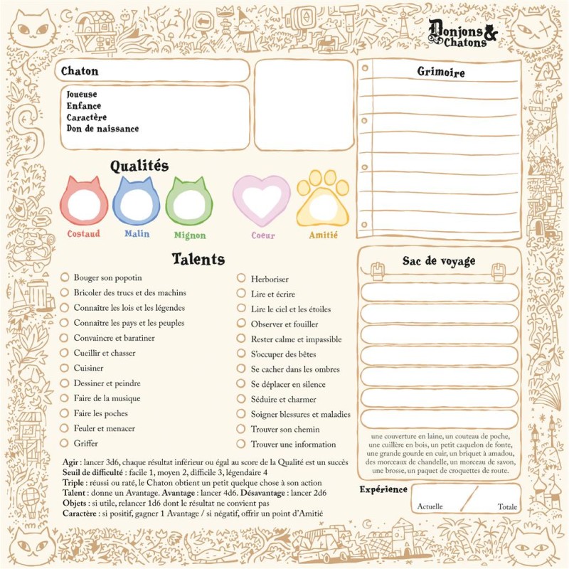 Donjons & Chatons est un jeu de rôle et d'aventures qui se déroule dans un univers mêlant contes animaliers, Moyen-Âge fantastique et monde post-apocalyptique. On y suit les pérégrinations d'une compagnie de Chatons, chassés de leur royaume natal par une loi inepte et les caprices d'un tyran.