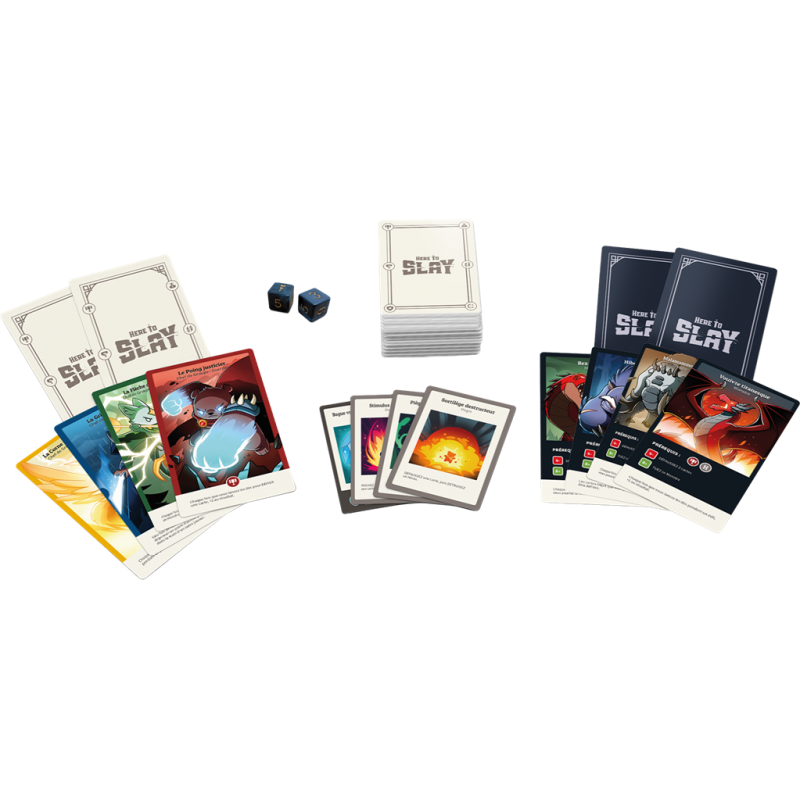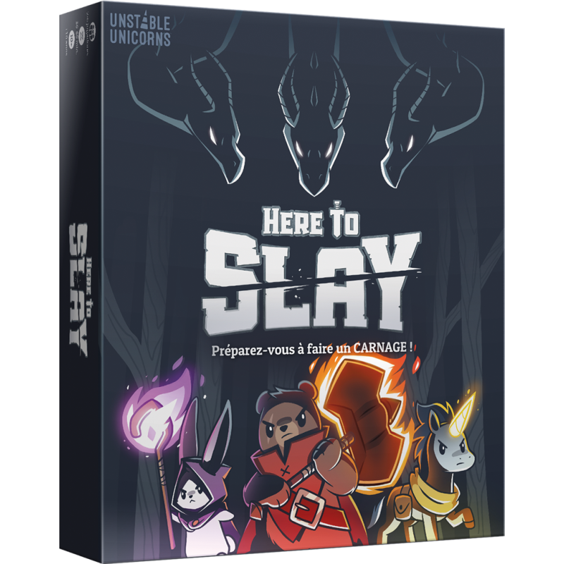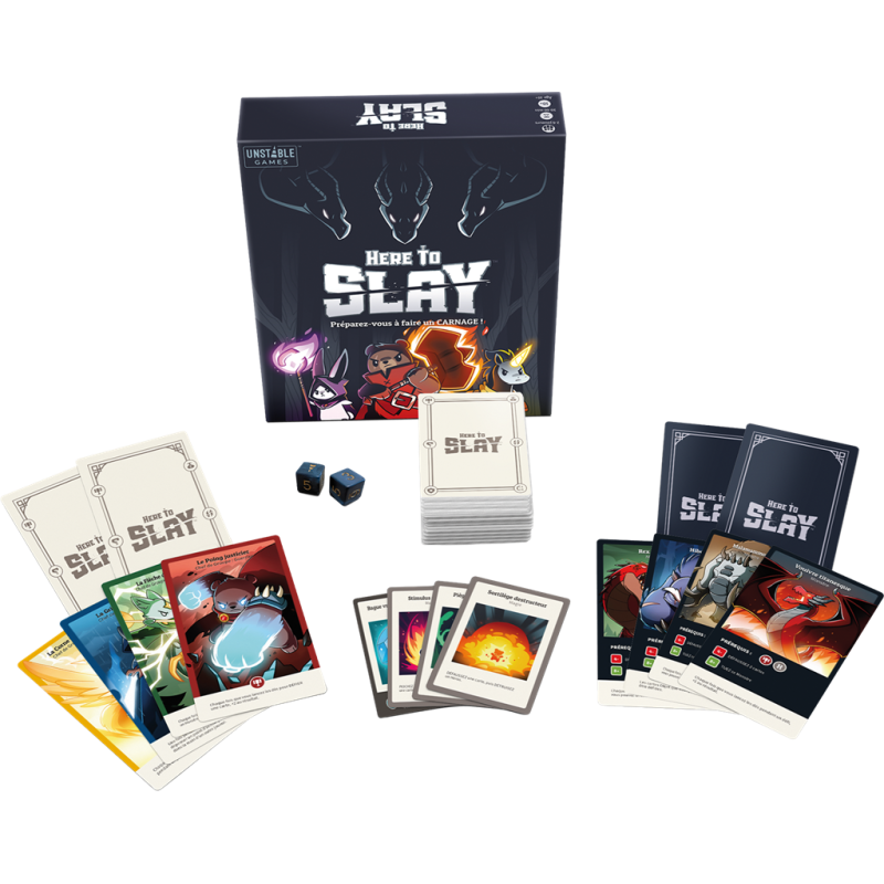 Here to Slay est un jeu de cartes stratégique dans un univers de fantasy, conçu par les créateurs d’Unstable Unicorns. Il vous invite à créer votre propre Groupe de Héros afin d’occire de dangereux Monstres tout en sabotant les efforts de vos concurrents.