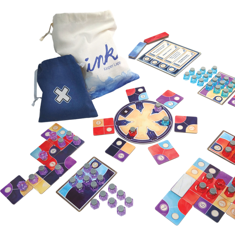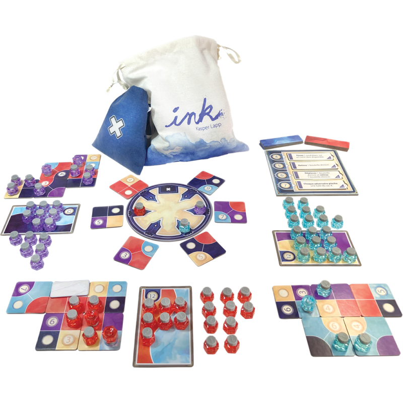 Ink est le jeu de tuiles où l'art et la stratégie vont de pair, et l'encre coule comme une rivière. Ink vous invite à déployer vos talents artistiques, mais aussi vos compétences tactiques. Grâce à un système de draft astucieux sur une roue, vous sélectionnez la tuile de couleur idéale dans votre stratégie.