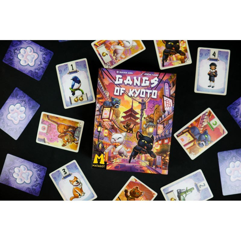 La vie d’un chat peut très bien être formiaoudable, mais même le plus heureux des chats sera curieux de savoir ce qui se cache derrière les murs de son jardin ! Dans ce jeu, les joueurs incarnent les chats qui explorent la ville. Au fur et à mesure que la pioche est explorée, les chats découvriront de la nourriture, des amis et des cadeaux spéciaux... Mais attention à ne pas rester trop tard : vous pourriez bien vous perdre dans les rues de Kyoto !