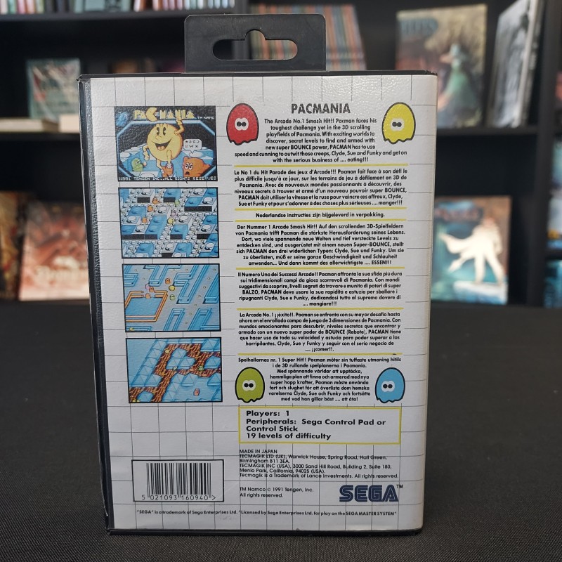 Pac-Mania est un jeu d'action sur Master System. Disposant d'une nouvelle vue isométrique, cet épisode de la série des Pac-Man vous propose toujours de guider le petit personnage à travers des puzzles variés tout en dévorant les boules jaunes. Il vaut éviter les fantômes qui vous pourchassent à moins d'avoir avalé un bonus qui vous permet de les manger. Au rang des nouveautés, Pac-Man et les fantômes peuvent désormais sauter.