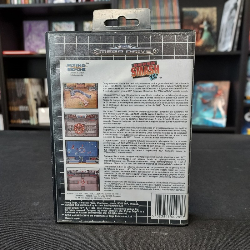 Smash T.V. sur Megadrive vous place dans un morbide, mais heureusement fictif, jeu télévisé, où deux combattants armés jusqu'aux dents s'affrontent à travers diverses arènes remplies d'individus mortellement dangereux. Le but est de faire plus de dégâts que votre adversaire, tout en récoltant un maximum de cadeaux.