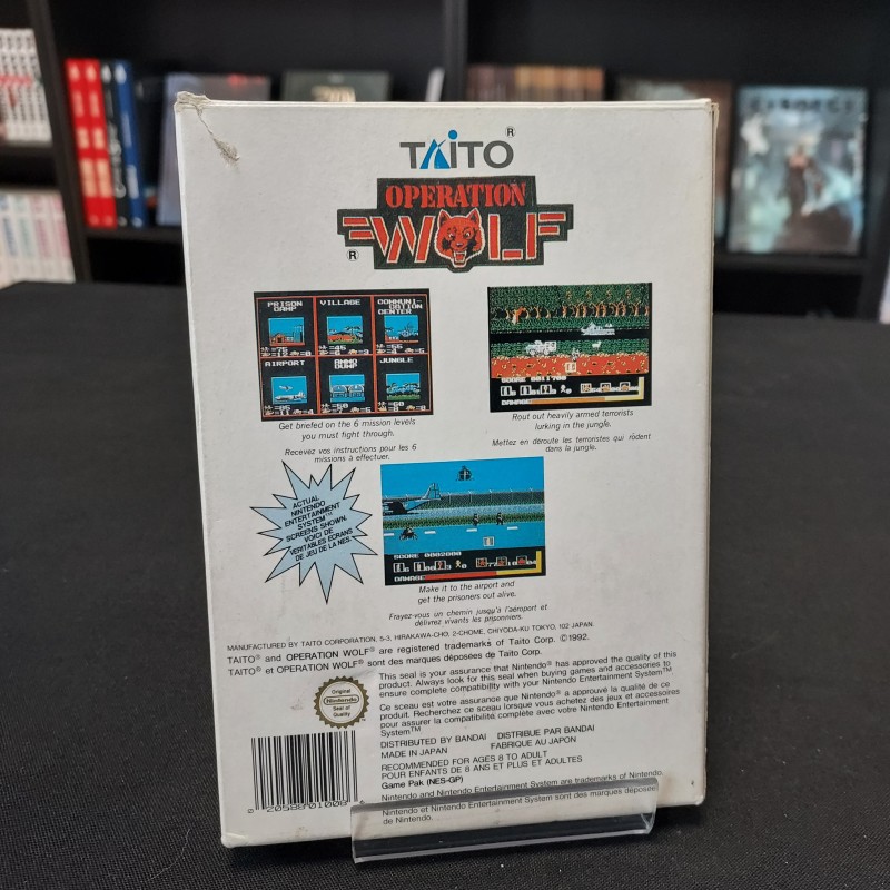 Operation Wolf est un jeu de tir sur NES adapté de la célèbre borne d'arcade. Vous êtes un mercenaire envoyé dans la jungle par le gouvernement américain pour sauver des otages retenus par des guérilleros locaux. Traversez 6 missions et sauvez un maximum de gens avec votre mitrailleuse et vos grenades pour obtenir la meilleure fin possible et la plus grosse prime remise par le Président des États-Unis himself !