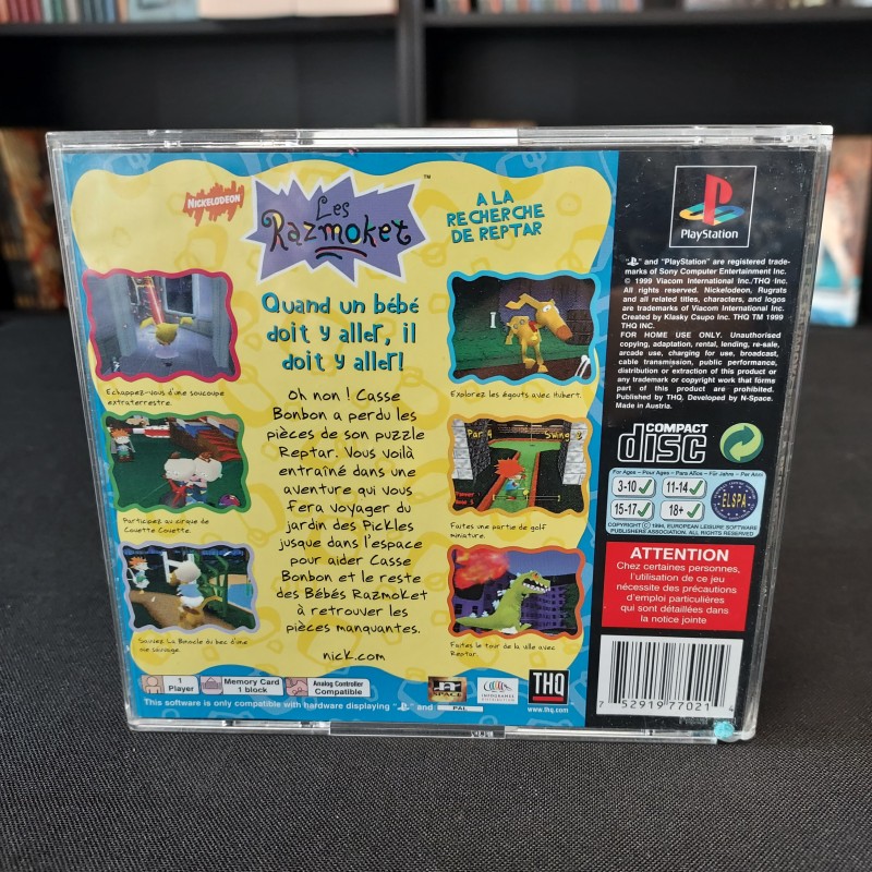 Les Razmoket : A la Recherche de Reptar est un jeu d'action sorti sur Playstation. Dans ce titre, vous incarnerez tour à tour chacun des personnages de la série dans une multitude de petits jeux variés. Vous évoluez dans un environnement entièrement en 3D qui est la maison familiale et ses alentours. L'objectif est de retrouver les pièces égarées d'un puzzle de Reptar. Pour cela, vous devrez finir chacun des petits jeux qui vous seront proposés.