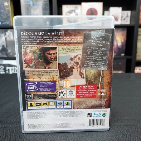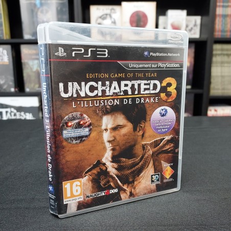 Uncharted 3 : L'Illusion de Drake sur Playstation 3 est un jeu d'action/aventure. Vous dirigez Nathan Drake, descendant du célèbre explorateur Sir Francis Drake. Du désert Rub' al Khali à Iram, la cité des piliers en passant par la France, une chose est sûre, ce troisième épisode d'Uncharted vous fait voir du pays.