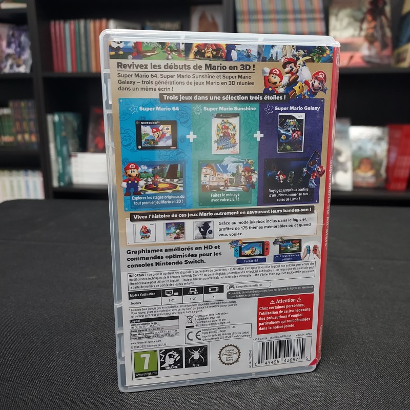 Cette collection exceptionnelle réunit Super Mario 64, Super Mario Sunshine et Super Mario Galaxy dans des versions optimisées pour Nintendo Switch.